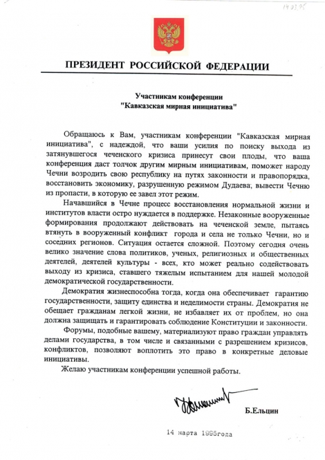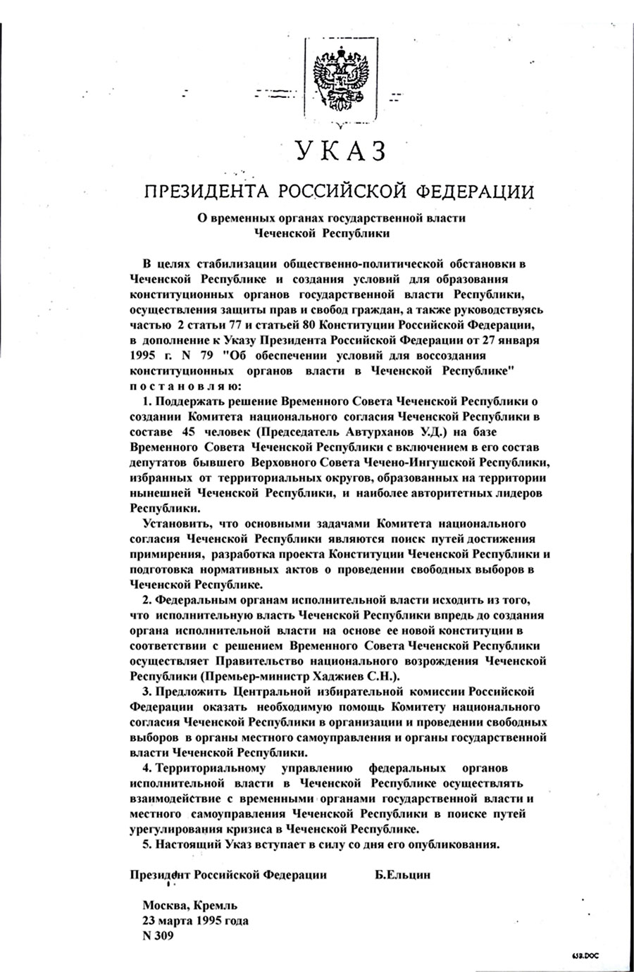 23 марта - Ельцина подписал Указ «о временных органах государственной власти в Чеченской Республике».