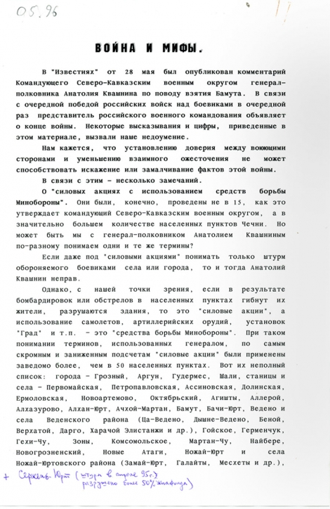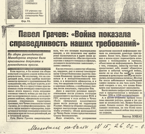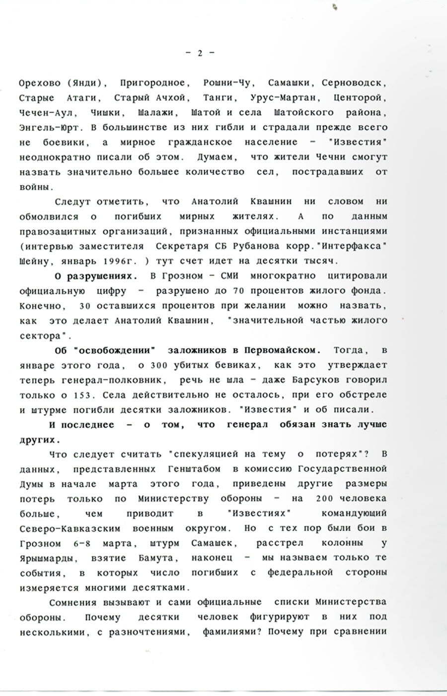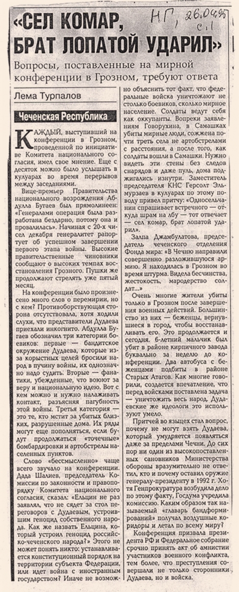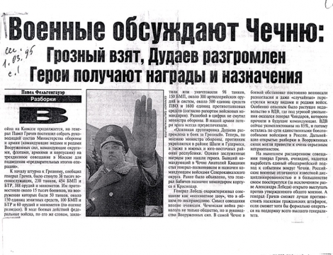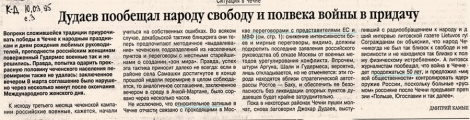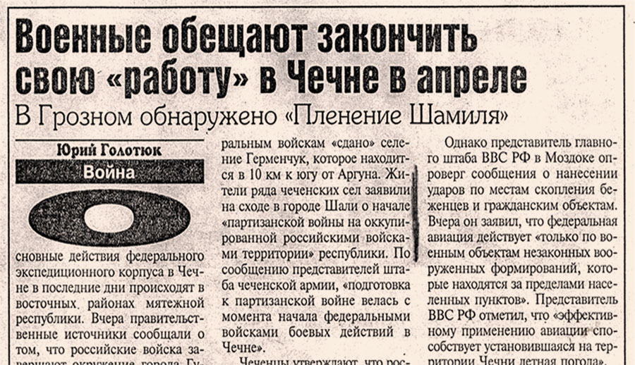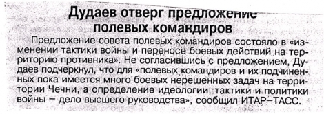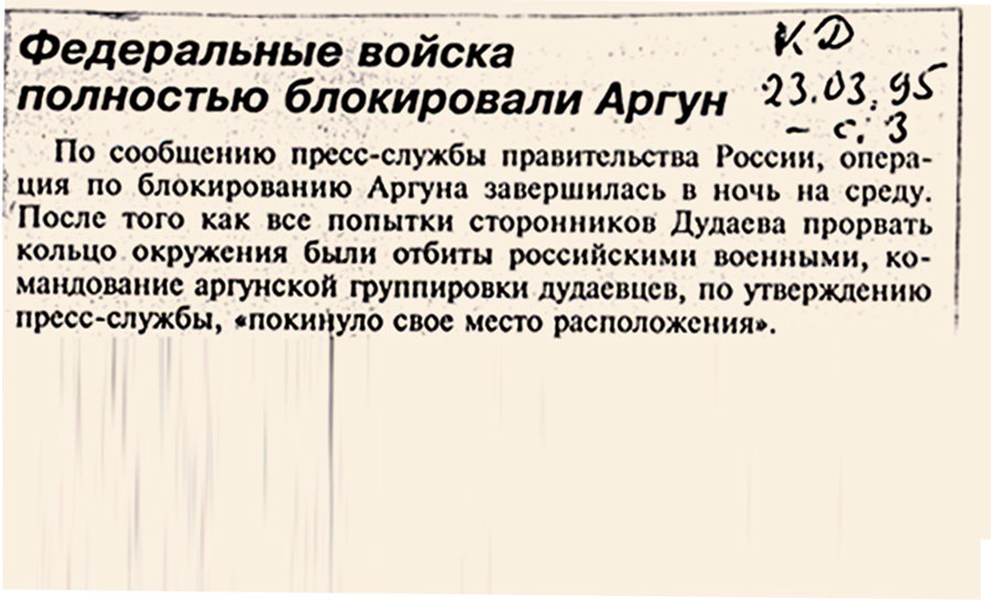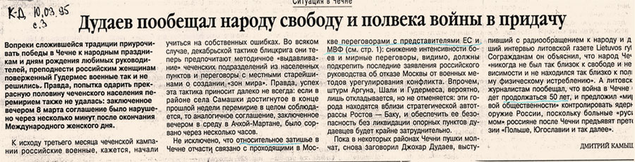 28 марта - Масхадов обратился к Куликову с предложением о переговорах. Тот отказал: «предметом переговоров - только сдача оружия».