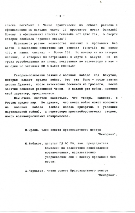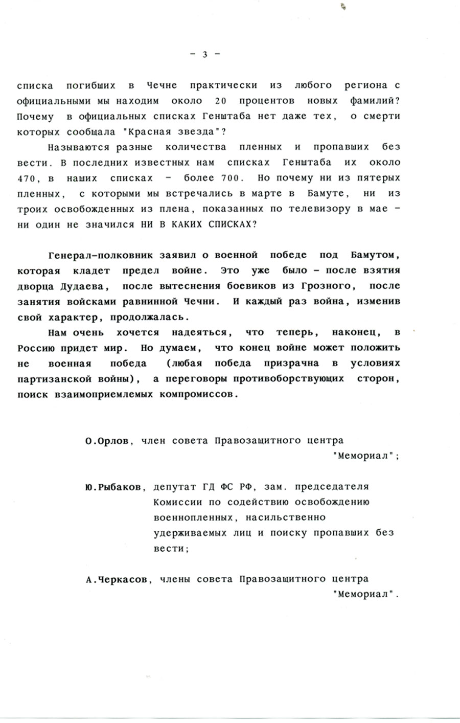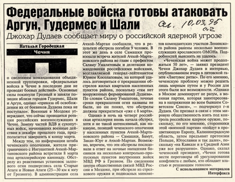 3 марта - выдвинуты ультиматумы жителям Аргуна, Шали Гудермеса и Самашек.