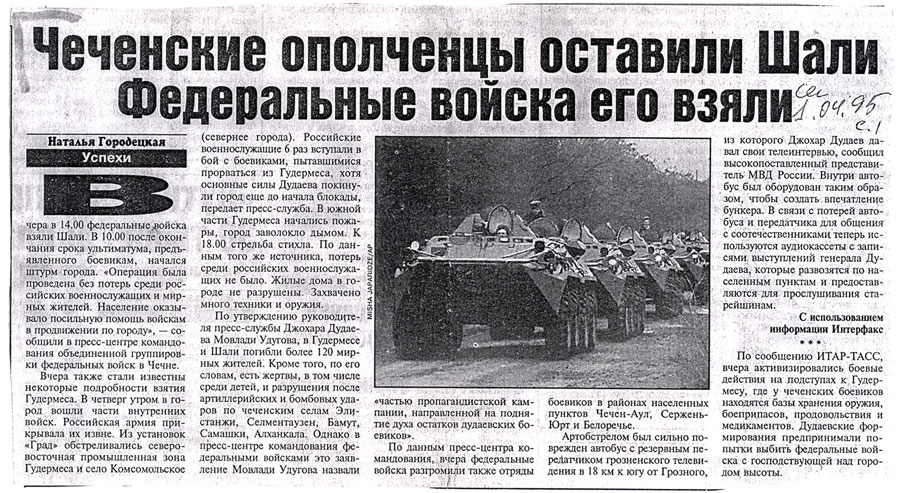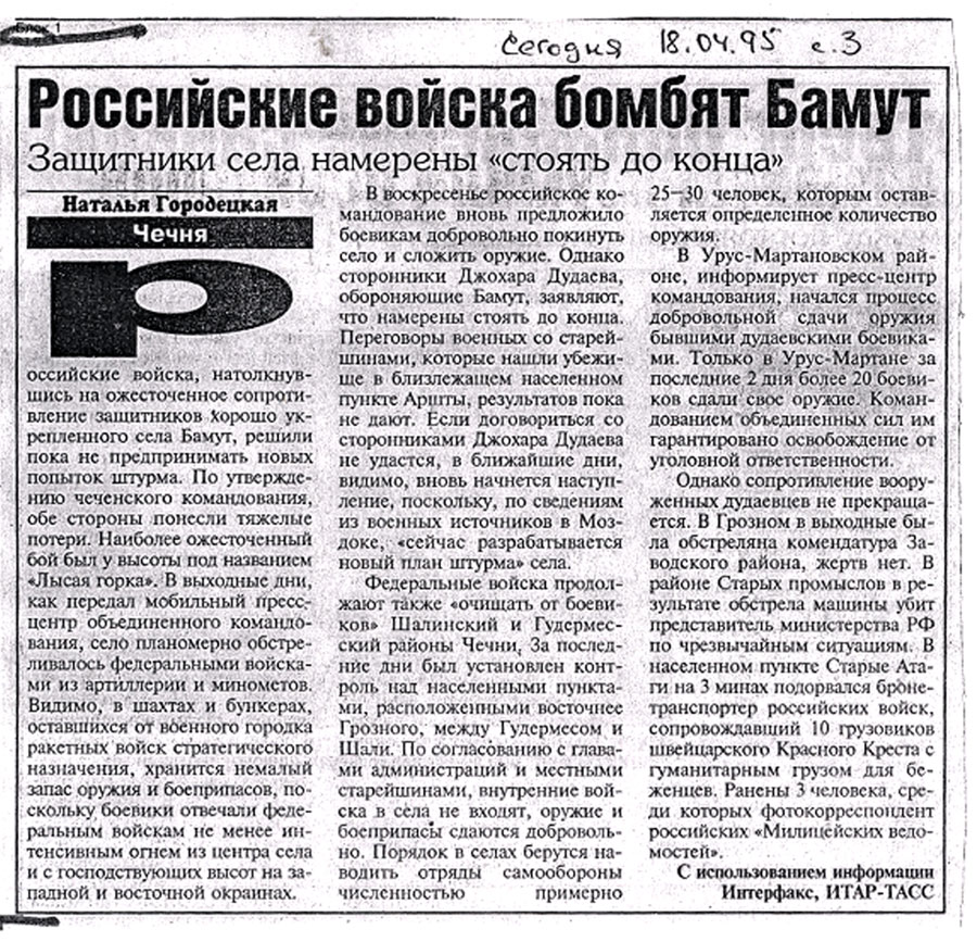 7-8 апреля – кровавая «зачистка» с. Самашки.