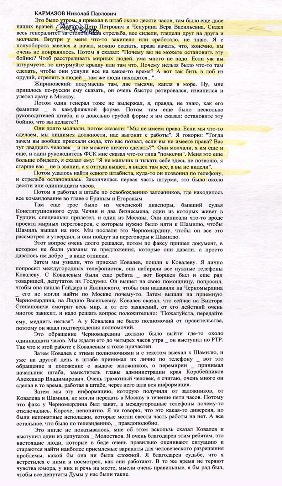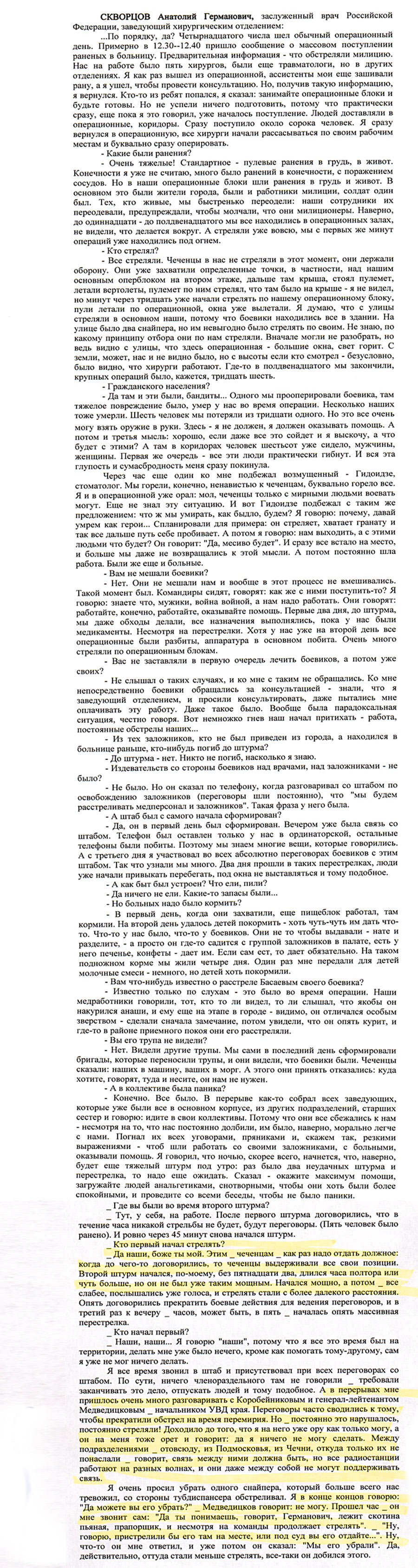 /…/ Вранья о штурме больницы было написано немало. На разные лады повторялась генеральская ложь о том, что штурм был успешным. Утверждается, например, что спецназ захватил первый этаж больницы…