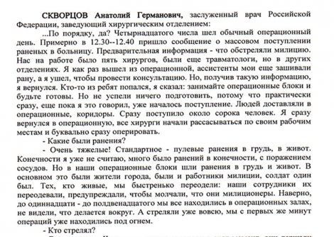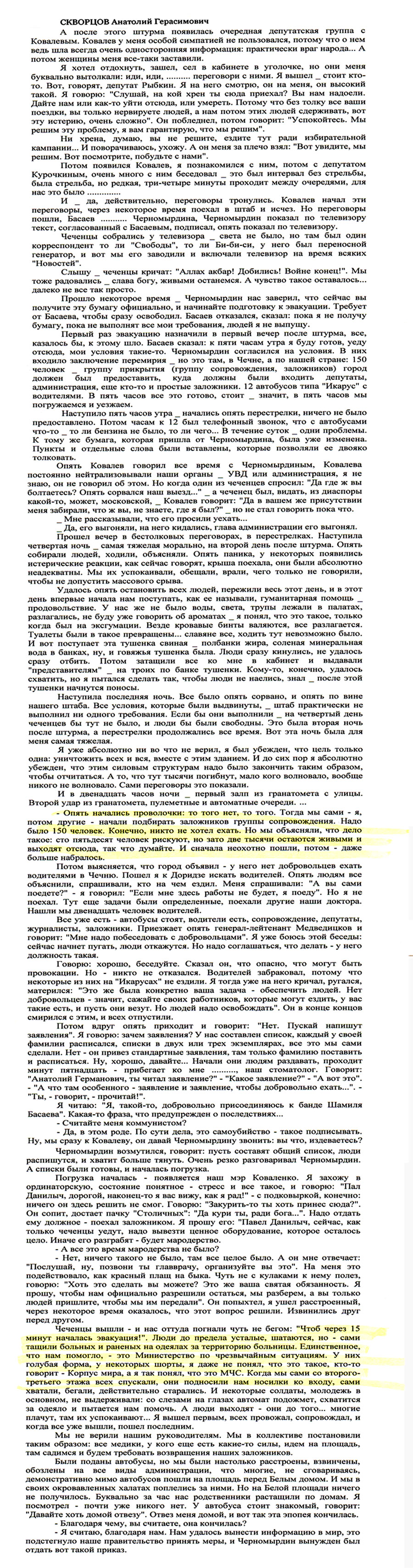 По совокупности всего, что я видел сам и узнал позже — с небольшими уточнениями доверять можно лишь версии командира отряда «Альфа» А.Гусева,
