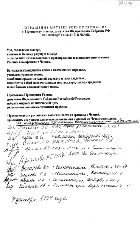 21 июля 2014 г. Министерство юстиции РФ включило Межрегиональную общественную организацию Правозащитный Центр «Мемориал» в «реестр некоммерческих организаций, выполняющих функции иностранного агента». ПЦ «Мемориал» — самоуправляемая общественная организация, не являющаяся «агентом» какого-либо внешнего «принципала». Мы считаем закон «об НКО — «иностранных агентах» противоречащим Конституции РФ и нарушающим наше право на свободу объединения, в с связи чем обжалуем решение о внесении нашей организации в данный «реестр» в Европейском Суде по правам человека.