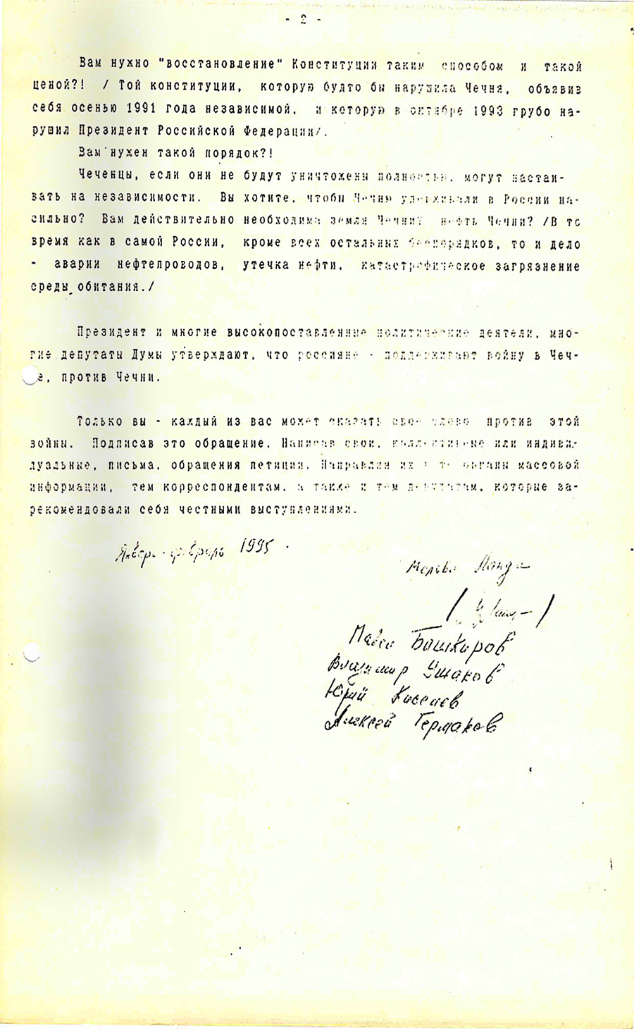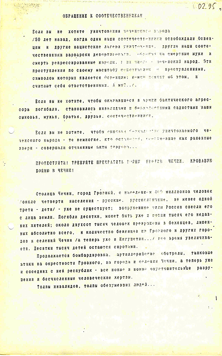 Февраль - май '95. Общество