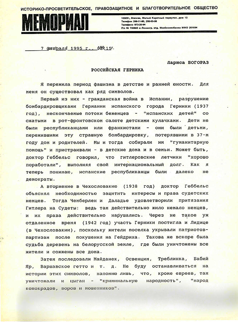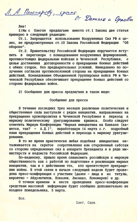 Из письма А.Даниэля и О.Орлова Л.Пономарёву. Март 1995.