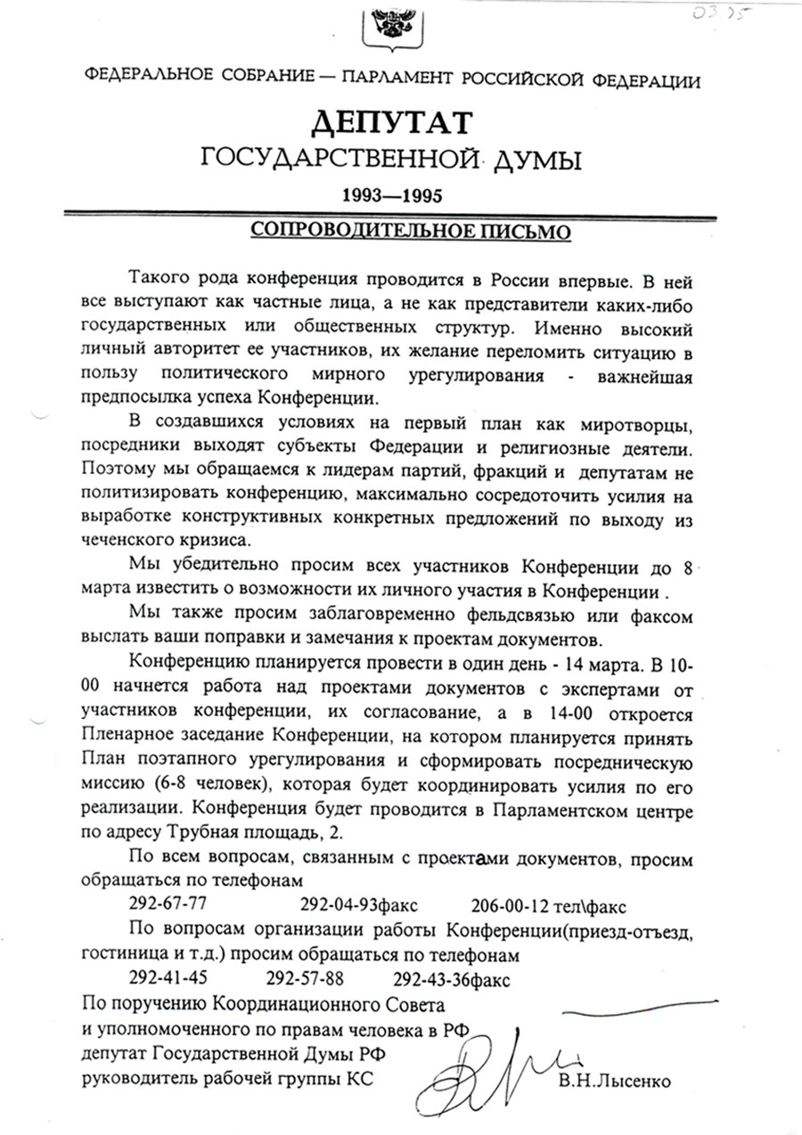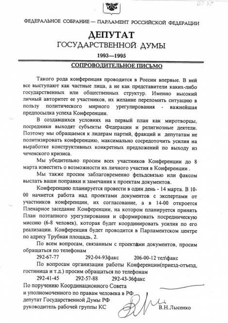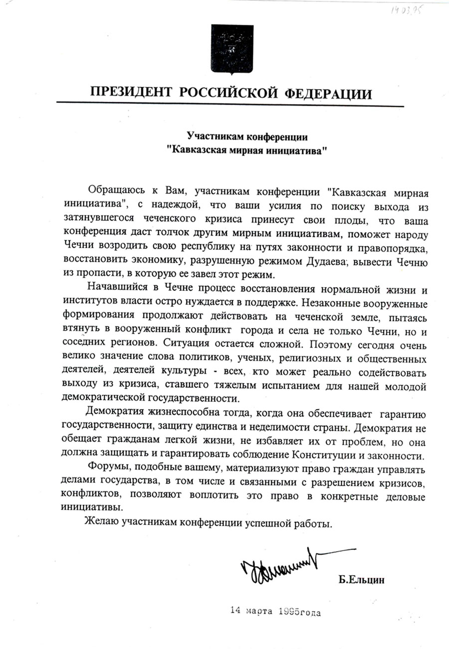 Февраль - май '95. Конференция мирная инициатива на кавказе